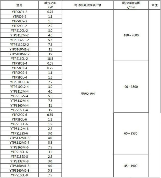 YTPS系列變頻調(diào)速三相異步電動(dòng)機(jī)與變頻器組成的通用型無級(jí)調(diào)速系統(tǒng),與其它無級(jí)調(diào)速方法相比,具有調(diào)速范圍廣、運(yùn)行可靠、維修費(fèi)低、體積小、效率高、節(jié)電效果好、速度調(diào)節(jié)精度高等特點(diǎn),并可實(shí)現(xiàn)速度和轉(zhuǎn)矩的閉環(huán)控制,是紡織、化工、冶金、煤炭、輕工、機(jī)械制造等行業(yè)的無級(jí)調(diào)速設(shè)備的理想動(dòng)力源。